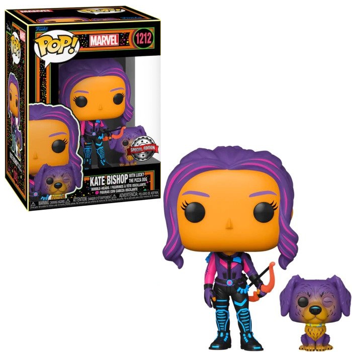 Funko Pop!& Buddy: Marvel Hawkeye – Kate Bishop with Lucky the Pizza Dog(Blacklight) (Special Edition) #1212 Vinyl Figure