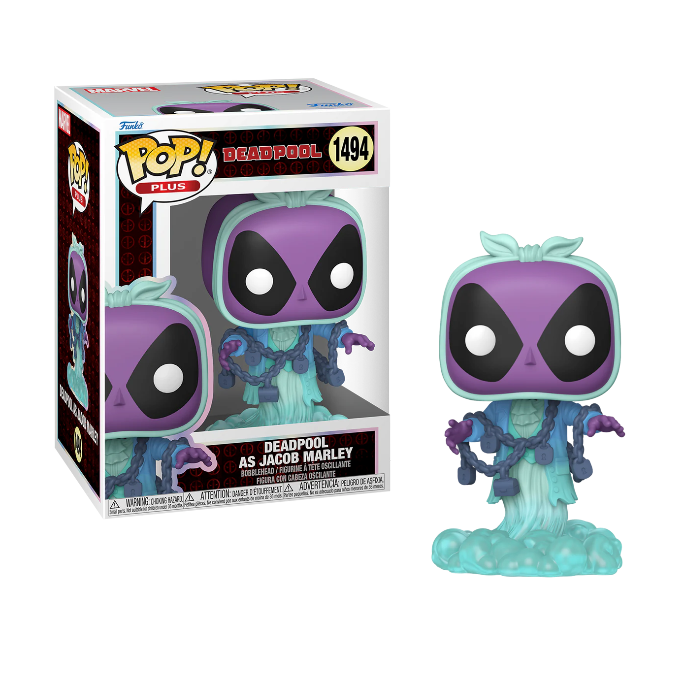 Ο Deadpool επιστρέφει με μια στοιχειωμένη μεταμφίεση εμπνευσμένη από τον Jacob Marley του “A Christmas Carol”! Η συλλεκτική φιγούρα Funko POP Plus! Marvel #1494 παρουσιάζει τον αγαπημένο αντιήρωα σε φάντασμα-μορφή, με αλυσίδες, φαντασμαγορικές λεπτομέρειες και το χαρακτηριστικό του χιούμορ. Κατασκευασμένη από υψηλής ποιότητας βινύλιο, με ύψος περίπου 9,5 εκ., αυτή η φιγούρα είναι ιδανική για fans της Marvel, συλλέκτες Funko και όσους λατρεύουν τις εορταστικές και ανατρεπτικές εκδοχές του Deadpool.